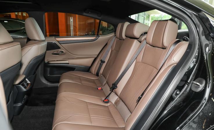 预算再往上走5.7万元,便来到了雷克萨斯ES的300h尊享版,作为次顶配车型,配置升级侧重点放在了后排。17英寸轮圈升级18英寸,另增加倒车车侧预警、并线辅助、方向盘记忆、手机无线充电、主驾驶座椅腿托/记忆、外后视镜倒车自动下翻/锁车自动折叠、后风挡玻璃遮阳帘、雨量感应式雨刷、前风挡电加热等配置,提升了驾驶位和后排乘客的驾乘舒适性,但并没有给到后排乘客座椅加热功能,比较遗憾。