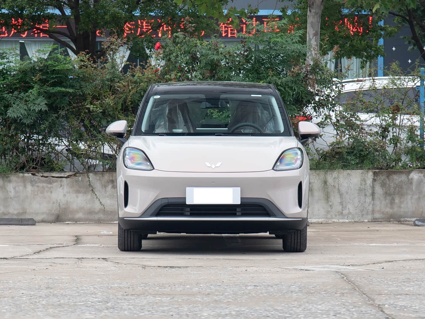 我们首先来看新车的外观设计方面,全新五菱缤果S采用全新鎏光美学设计,彻底摆脱传统代步车的廉价感,整体风格简约精致,兼顾年轻化与质感。前脸采用纯电车型专属的封闭式进气格栅,表面做细腻的肌理处理,搭配上方贯穿式LED日行灯,线条流畅柔和,点亮后形成完整的光带,辨识度拉满,同时中间嵌入五菱品牌标识,简约大气。两侧大灯组采用飞翼式设计,造型圆润灵动,内部配备LED光源,支持自动点亮功能,夜间照明效果柔和不刺眼。